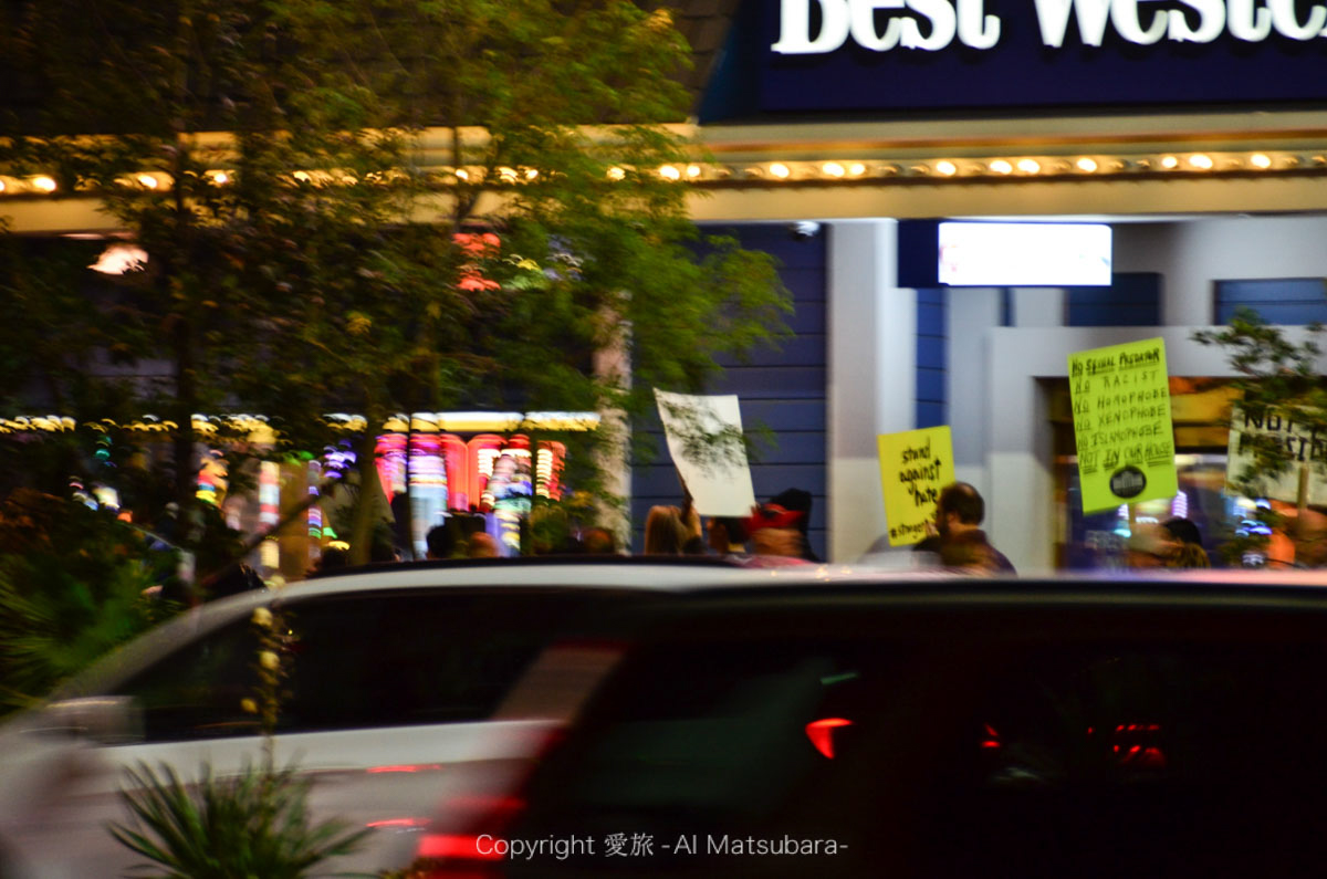 当時はちょうど大統領選挙の時期でトランプさんへの抗議デモも見かけたけど、パトカーが後ろからちゃんと同行してた。