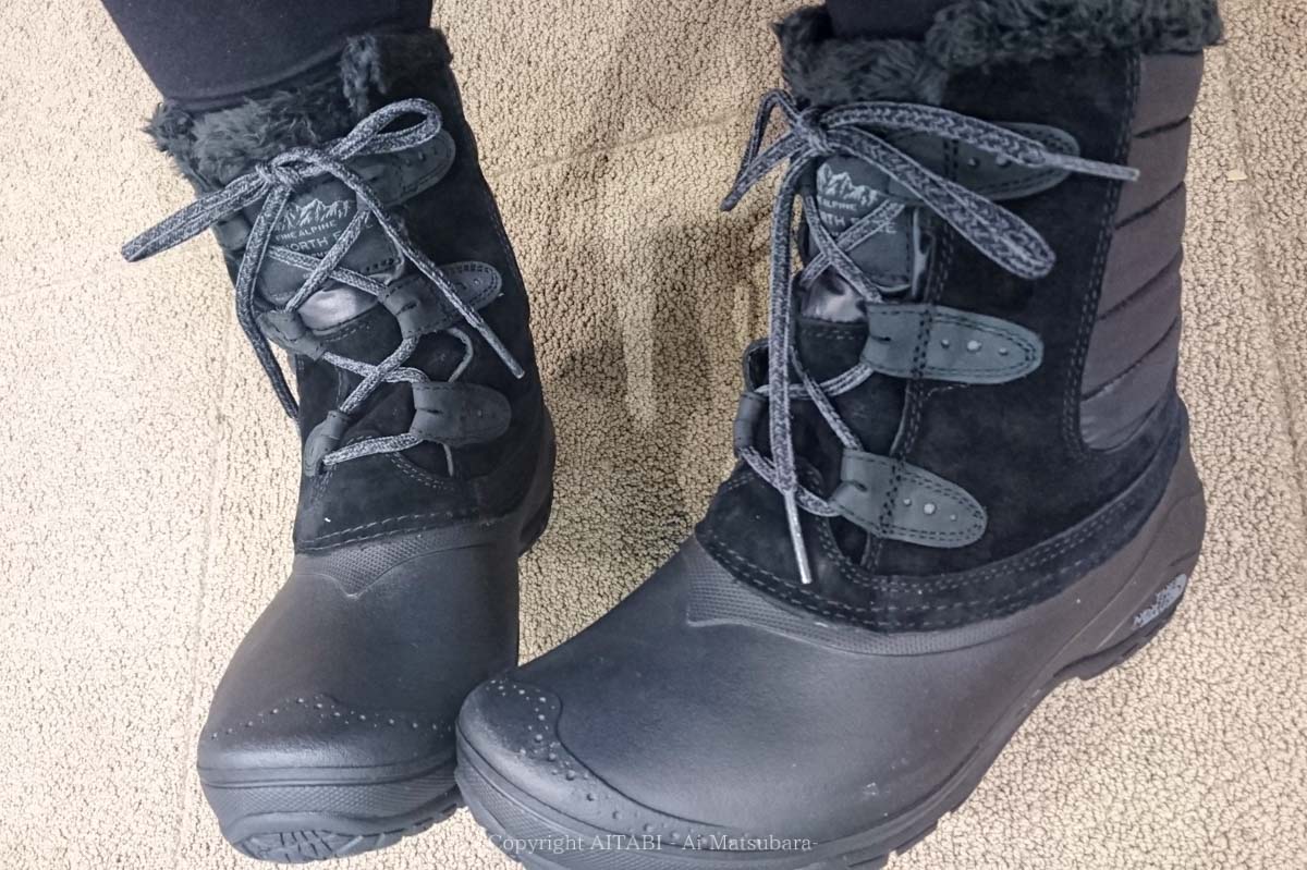 「見て!近くのノースフェイスでスノーブーツと帽子買ってきたの!(・∀・)」