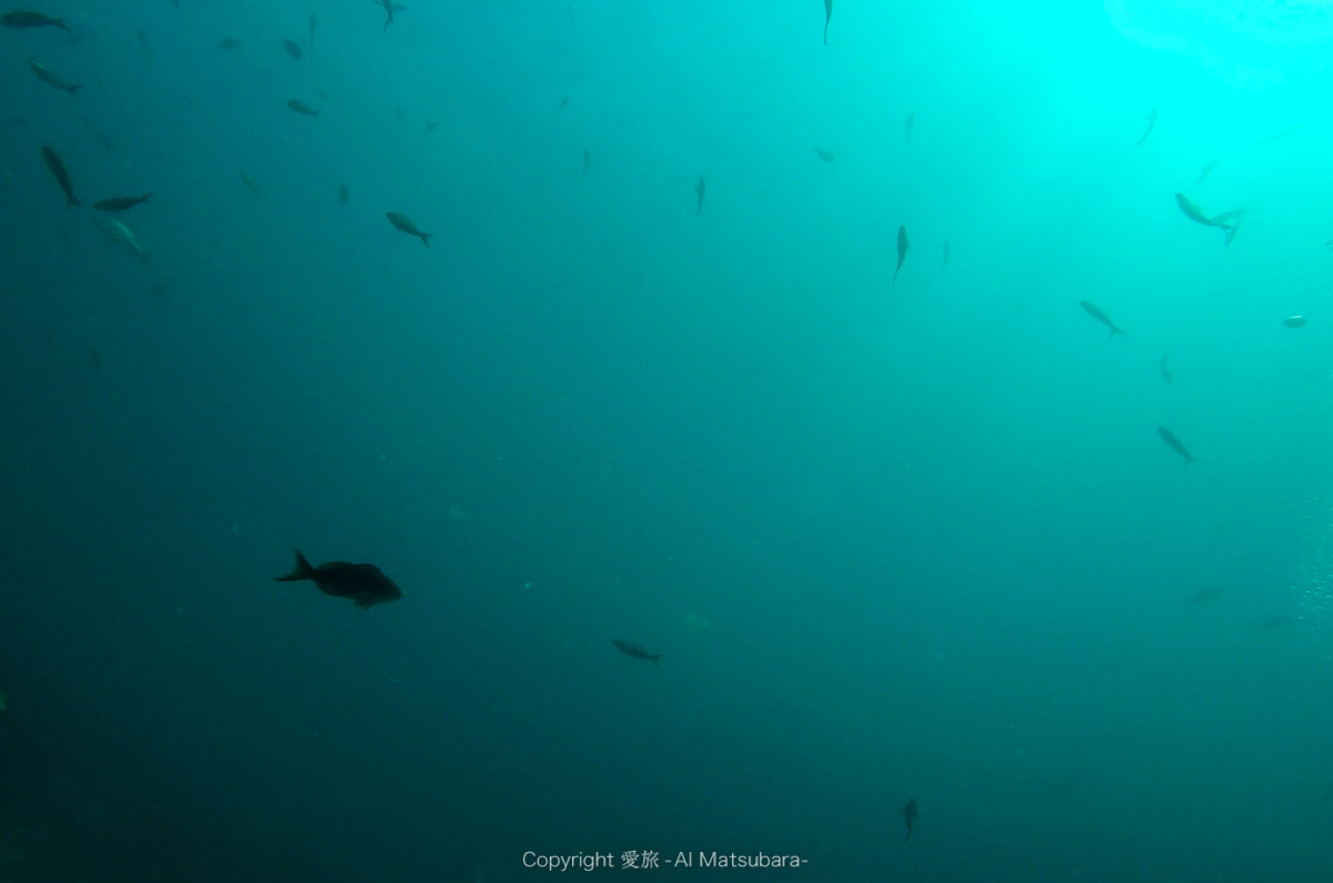 だが、相変わらず視界に入るのは小魚ばかりで、聞こえるのは自分が出す泡の音と、バディがタンクをカチカチと鳴らすサイン音ぐらいだった。