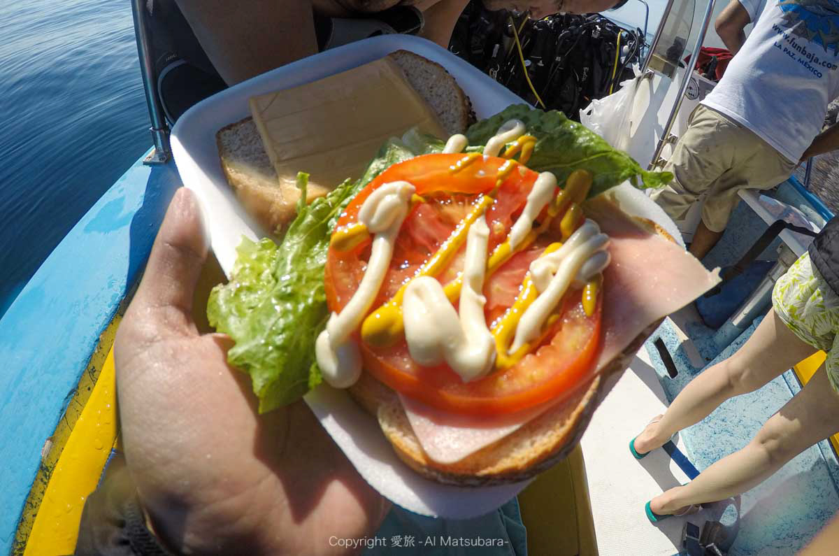 船の上でガイドさんが用意してくれた材料でサンドイッチを作って昼食をとった。