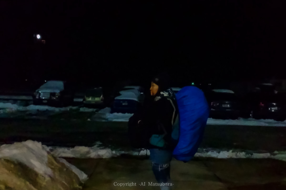 真っ暗な雪道を荒々しく走る一台の車が空港の前に停車したので「あれだ!」と思って外へ出た。