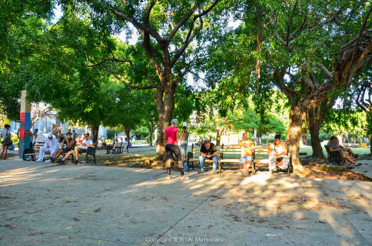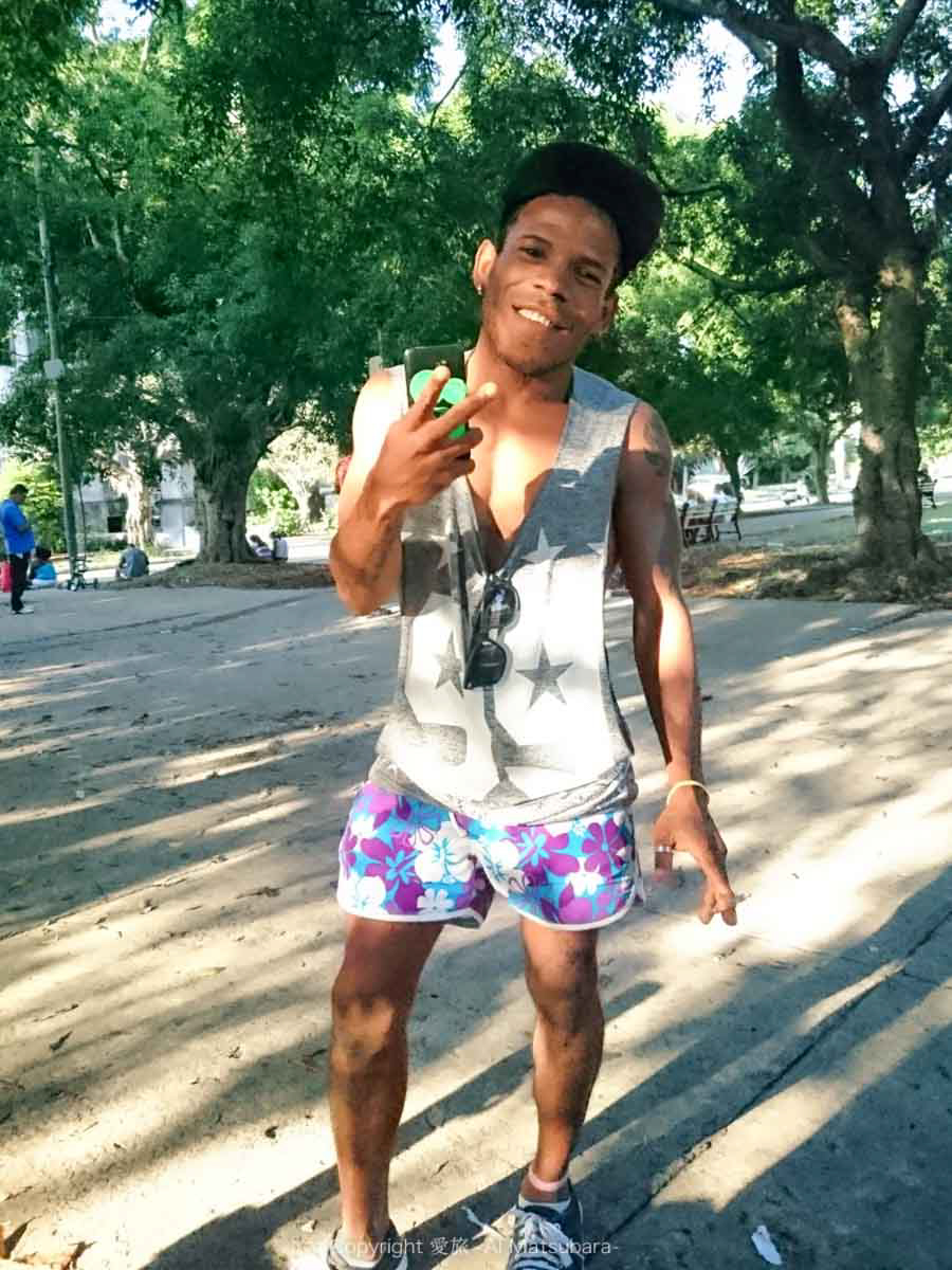 「ジョン!元気?わたし昨日からもうキューバだよ!ここ家でWi-Fi使えなくって、いちいち公園に来ないとだめなの;」