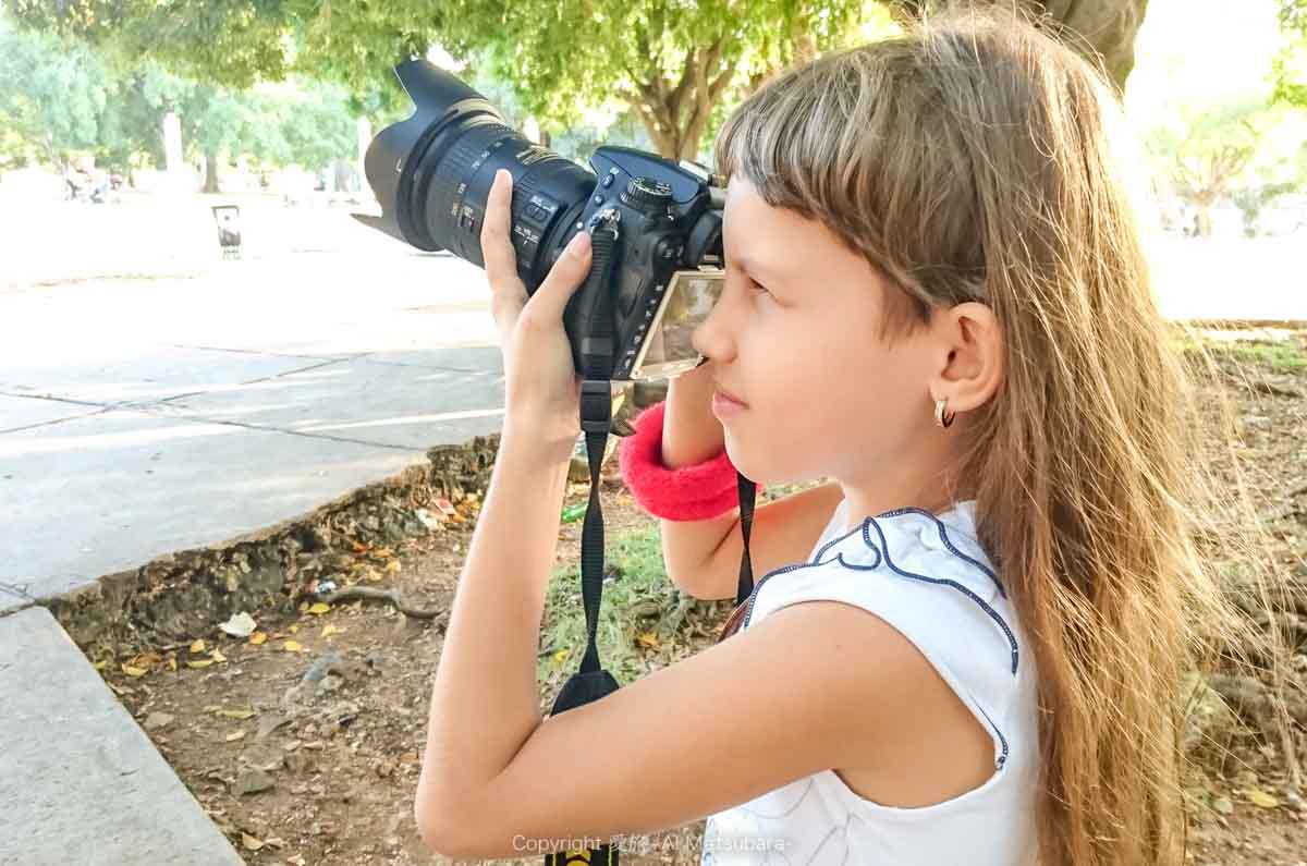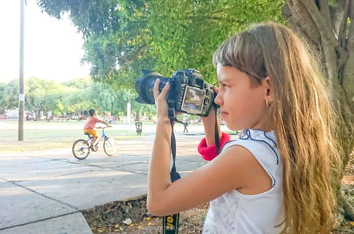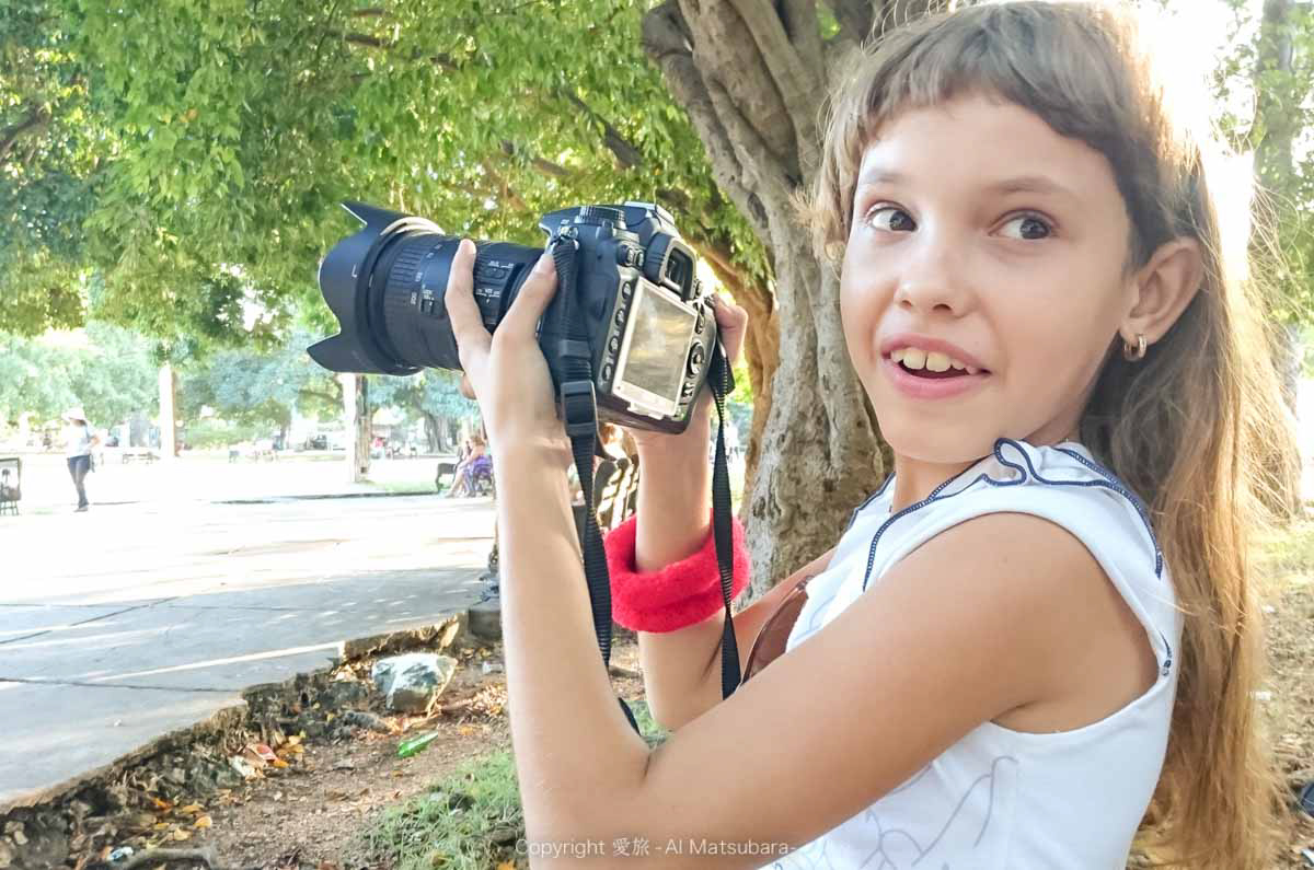 お姉ちゃんのほうに「カメラ使ってみる?(・∀・)」と英語とジェスチャーで話しかけると、伝わったみたいでこっちに来てくれた!