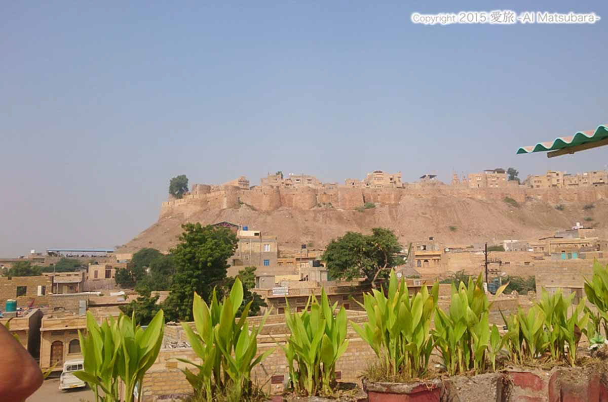 ここの屋上レストランから見えるジャイサルメール砦が素晴らしいのだ。