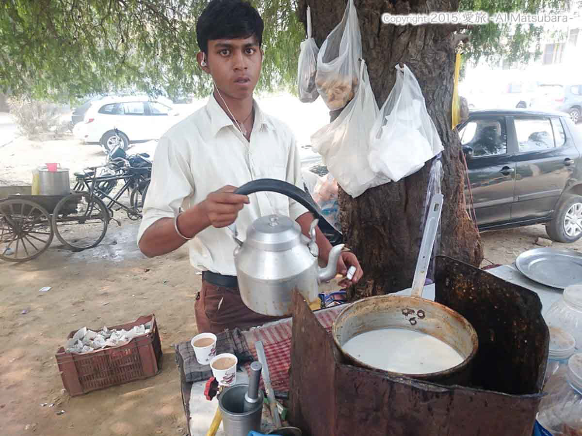 ランチの帰りは、お腹壊さないから大丈夫とお墨付きの道端にあるチャイ屋さんへ寄り道した。