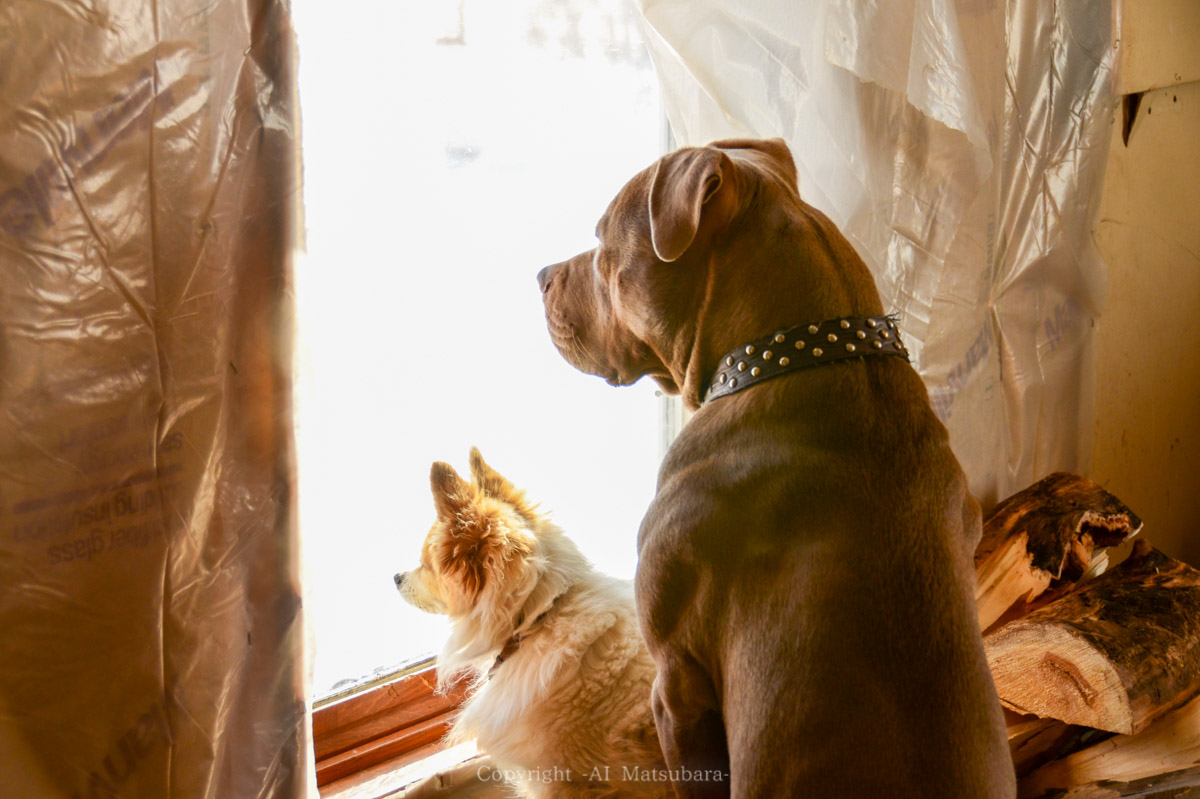 そんなパコとコナーが家の中でお留守番しているときは、こうしてよく窓から外のセカイを見ていた。