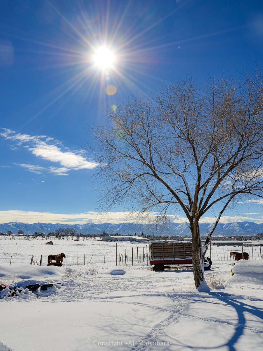 「ジミー!!!朝起きてびっくりした!昨日暗かったから全然わかんなかったけど、雪!雪景色!あの山脈も!すごいんだけど!雪がめっちゃ綺麗だね!いつ降ったの?!でね!そこに馬がいるの!触れるかなって思って近くに行ったら寄ってきてくれて、でもなんかご飯欲しそうだったんだけど、あげれるのかな?!!!あの馬たちは怖くない!?寒くないのかな?!大興奮!!!」
