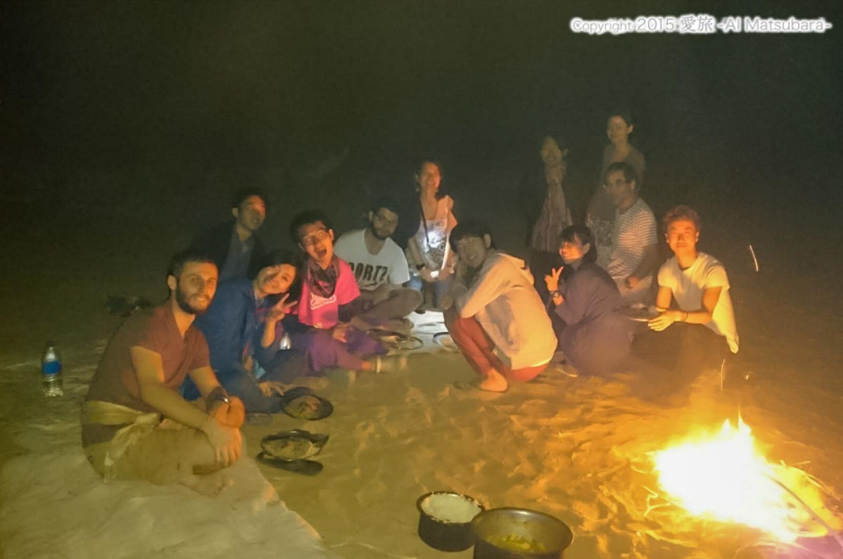 砂漠の上でキャンプファイアーを囲みながら食べる美味しいディナー。