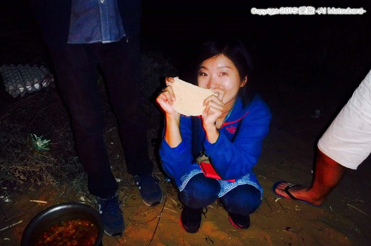 これも砂漠で粉からつくってフライパンで焼いてカレーをつけて食べるの!軽いから何枚でも食べれる。