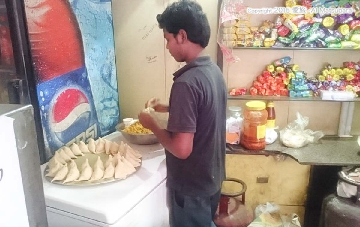サモサはじゃがいもをスパイスであえたものを生地に包んで油で揚げたインドの定番スナック。