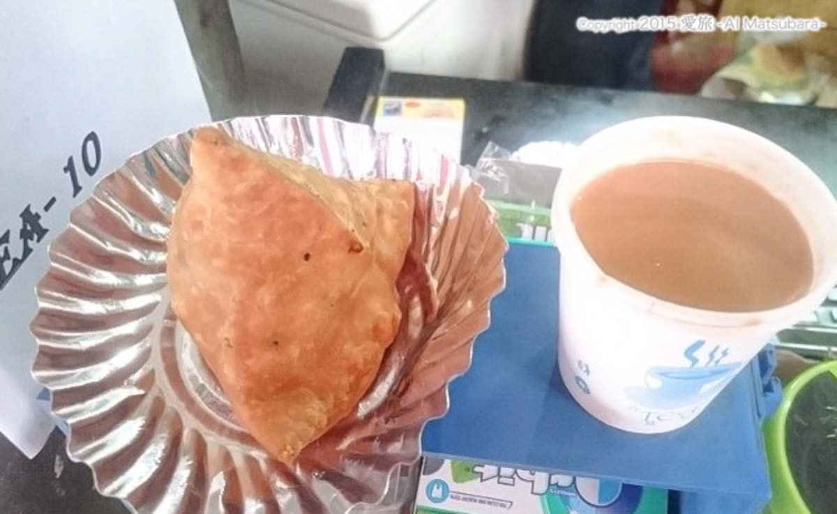 チャイだけ買おうとと思ったけど奥でサモサを作ってたので「辛くない?」って確認したら「辛くないよ」と言われたので注文してみました。
