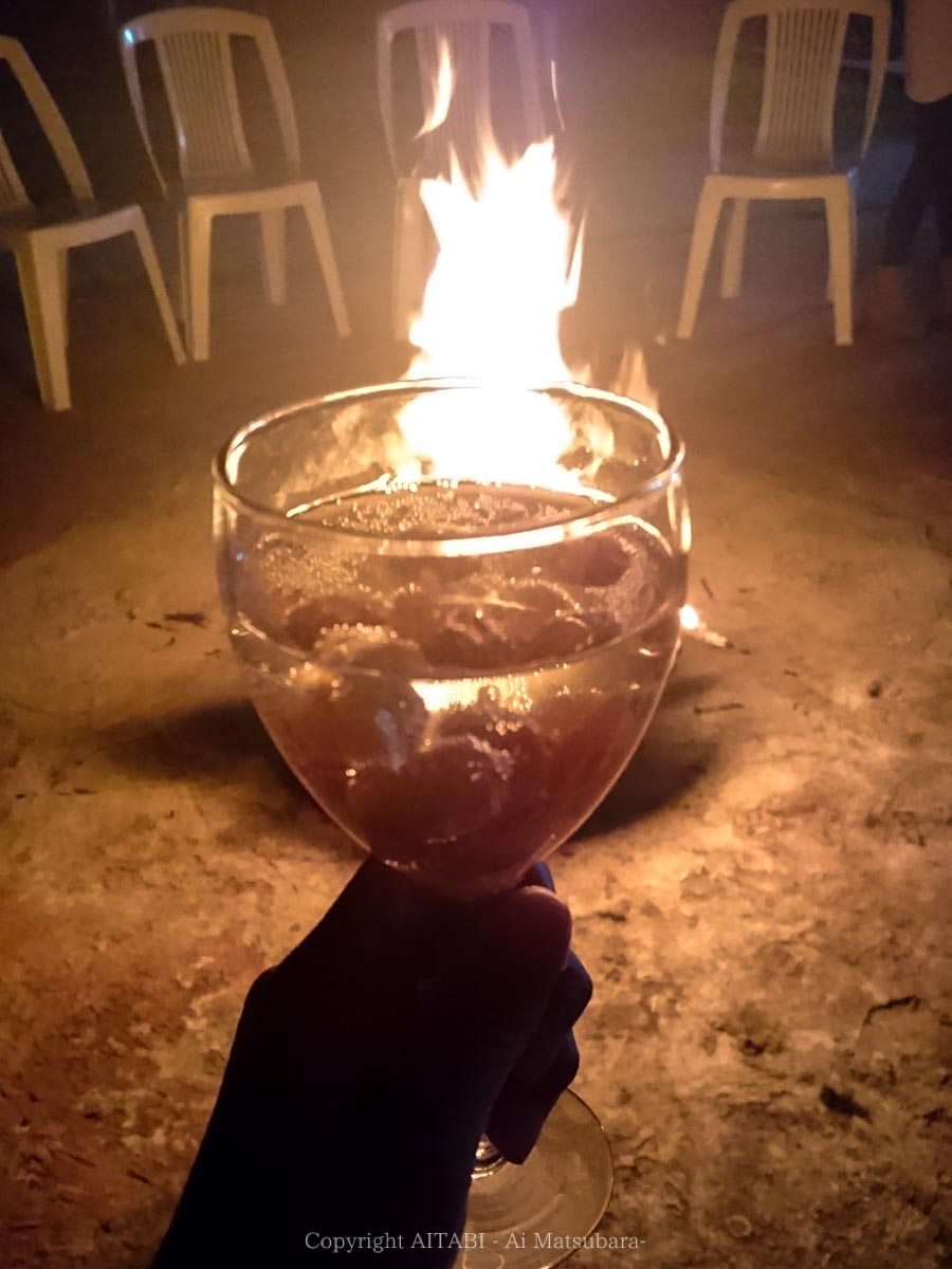 そしていよいよ今年一年が終わる数分前、男性達の手によって庭に炎が点火された。