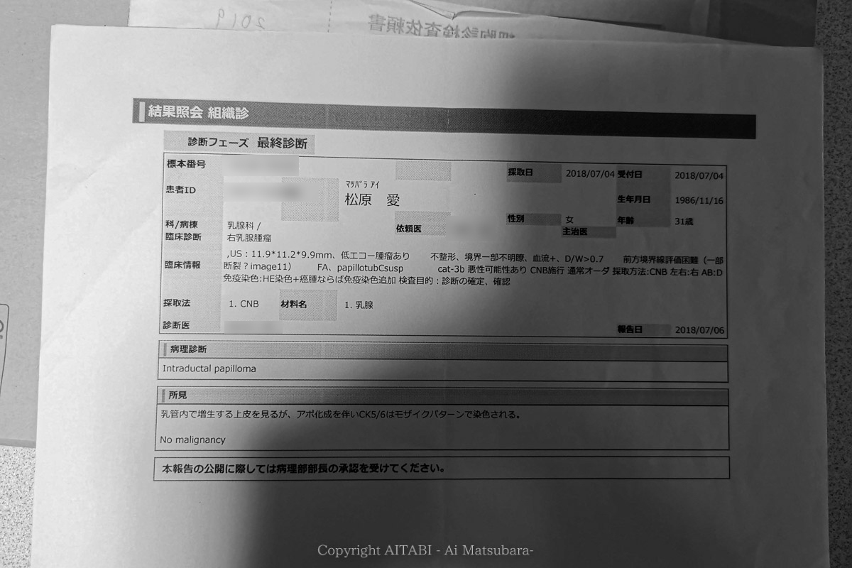 でもそのシコリには「乳管内乳頭腫」という名前がついた。