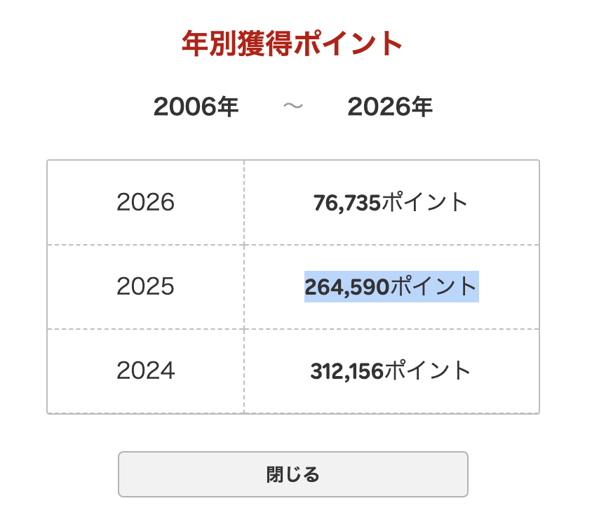 年間獲得ポイントは264,590ptでした。