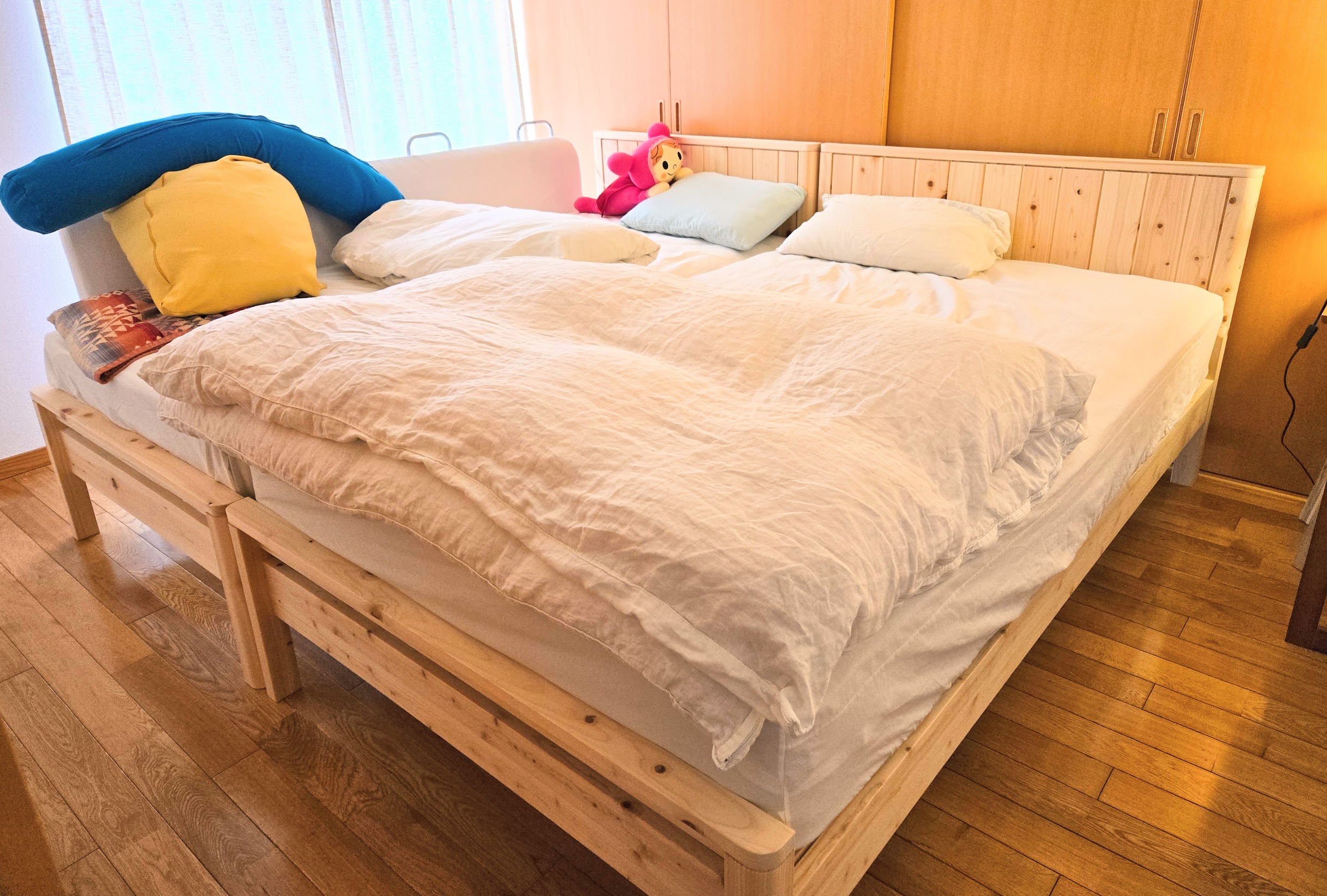 シングルとセミダブルを並べて快適な広さに