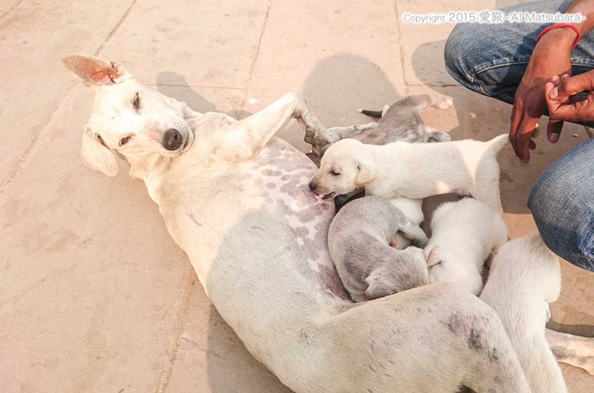 野良犬のお母さんは人間が捨てたゴミ溜めから食べ物を探したり、屋台にいる人間の前で姿勢よくじっと座りおこぼれをもらえるまで待つとゆう知恵をつけて、赤ちゃんに飲ませるミルクの栄養を蓄えていた。