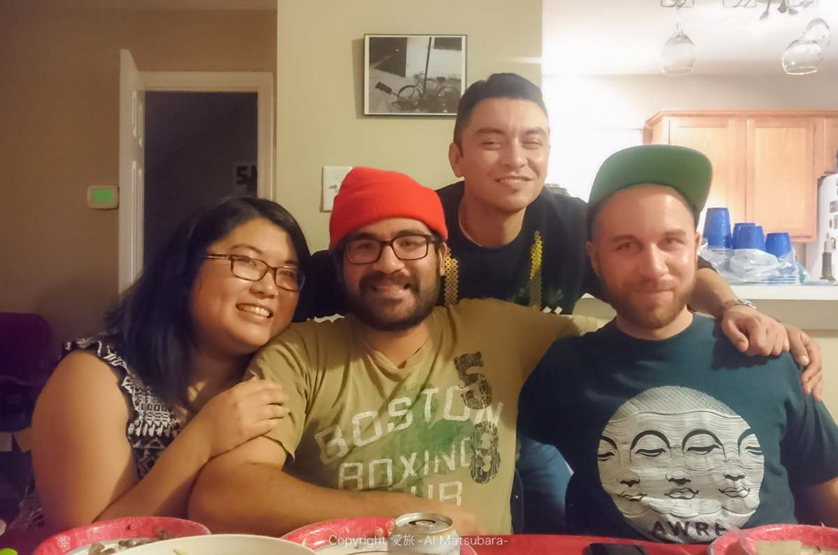 一番右のキャップをかぶった人が、今回私をお家に受け入れてくれたジョン!写真の中にはいないけど、ワイルドな黒人女性の友人と広くてお洒落な一軒家で共同生活してるんだぁ!