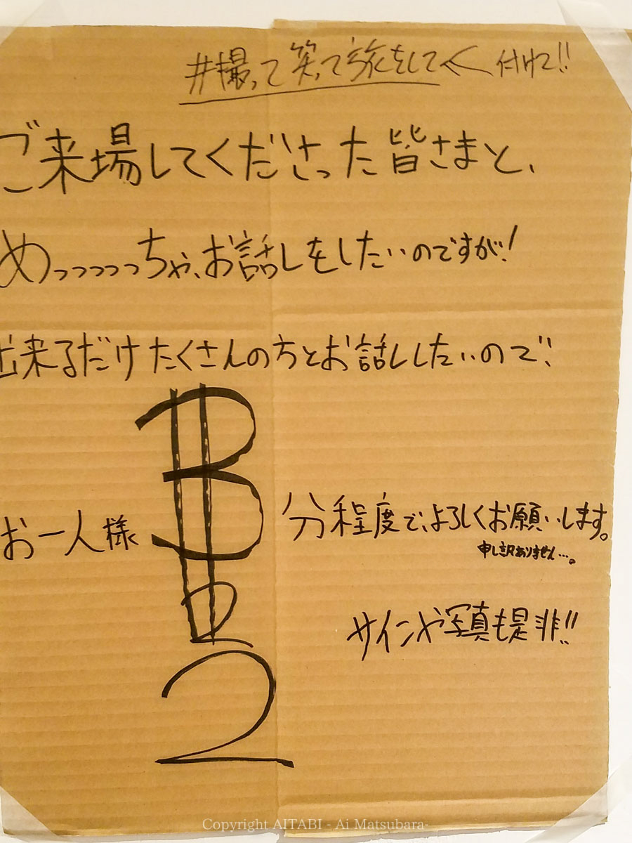 週末に開催された写真展で長蛇の列ができてしまったこともあり、こんちゃんと話せる時間は一人当たり2分のみ。