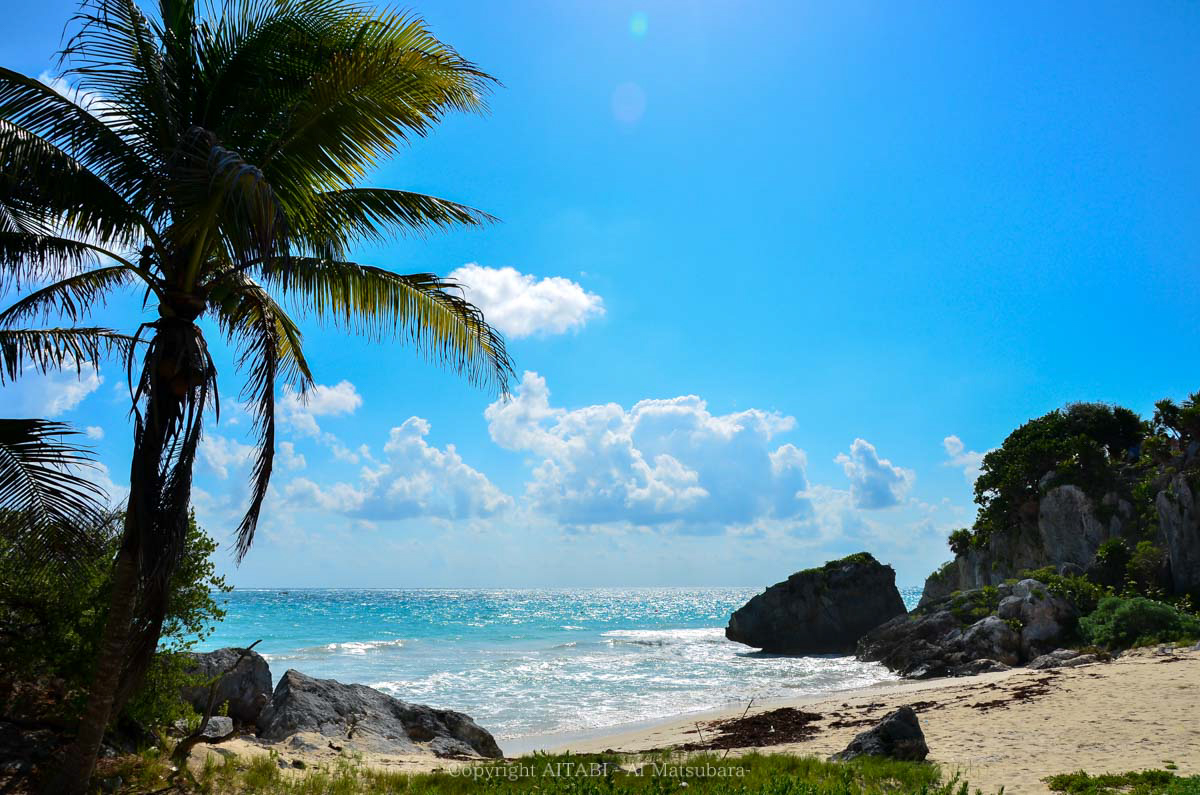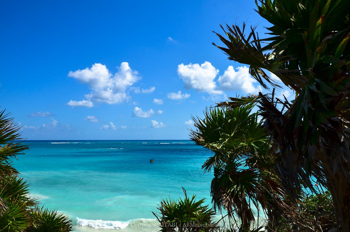 嘘みたいな空と海の色をしたこの開放的な場所は、カンクンから車で約2時間の場所にあるトゥルム(Tulum)とゆうところ。目の前に広がっているのは、カリブ海です!