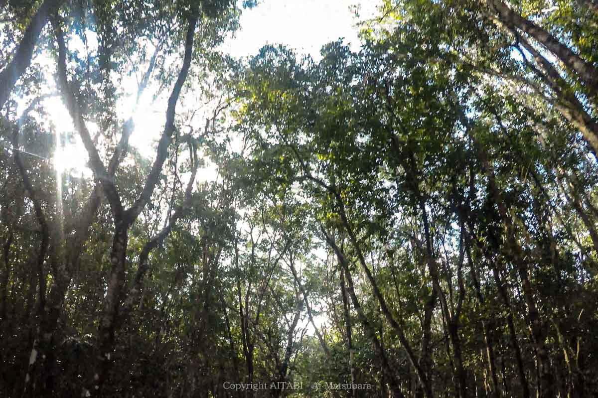 さらに、木陰の間から太陽がキラキラ輝きながら降り注いでくる。