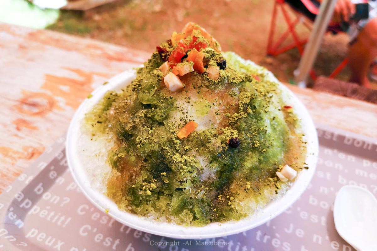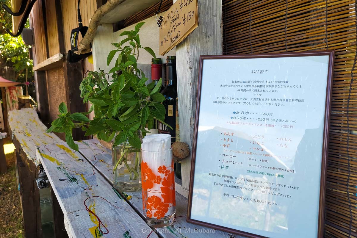 かき氷の上にかけるシロップまで、保存料や着色料不使用の無添加とのこと。