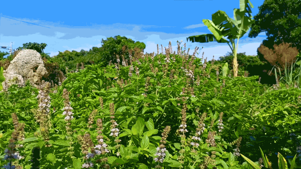 トムさんのカフェの前には、フランス庭園か!というぐらい立派で広い手作りの畑があって、そこにはバジルとバナナを始め、色んな植物が生き生きと育っている。