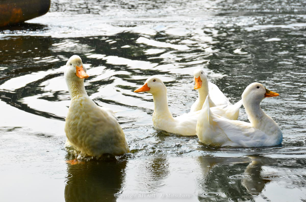 アヒルちゃん達が「ご飯ある?」って船まで遊びに来たよ。アヒルぐち可愛すぎる〜!せこい!←